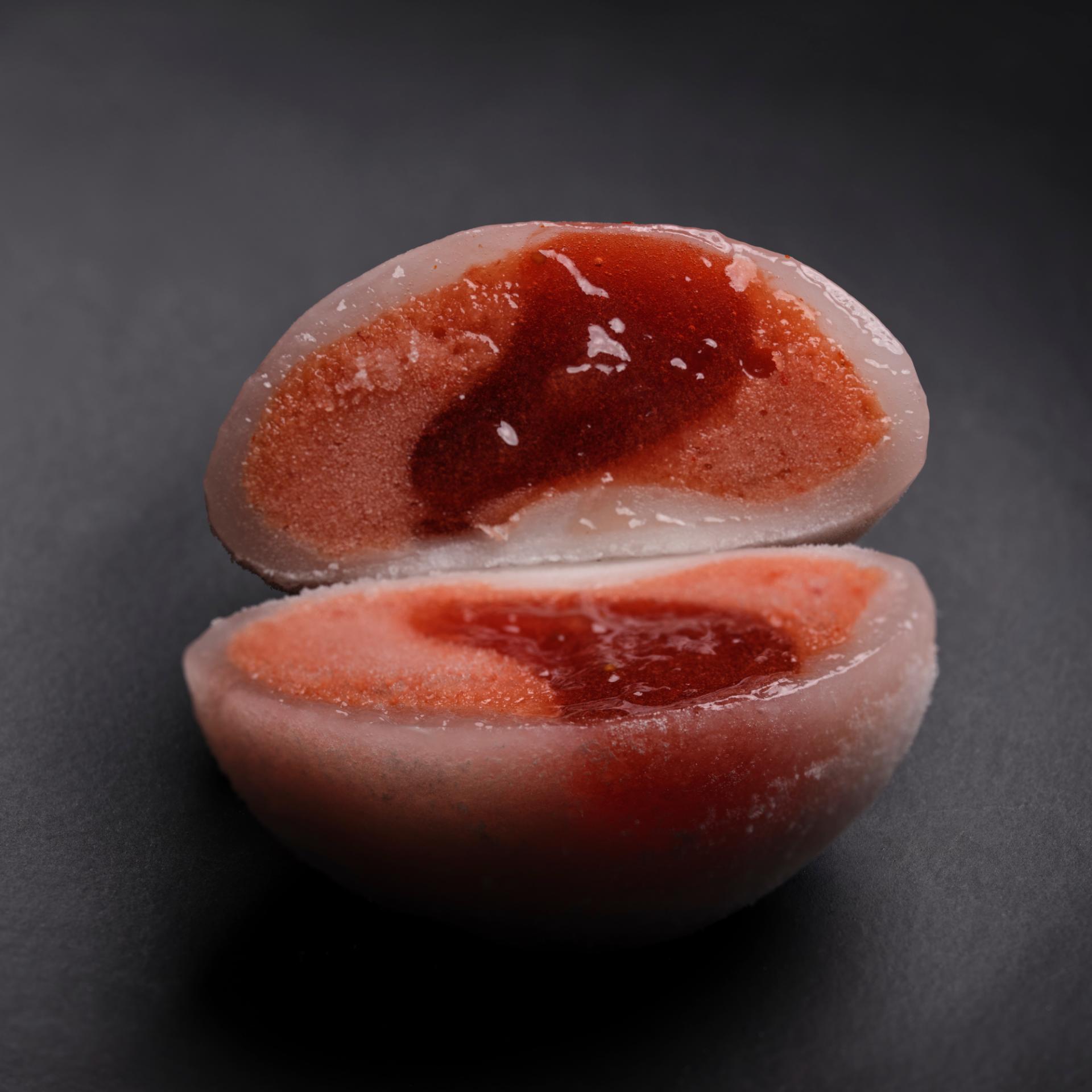 El chef Adrien Cachot se ha inspirado en un mochi de fresa que probó hace 8 años en Japón, donde los postres con fresa son muy apreciados.